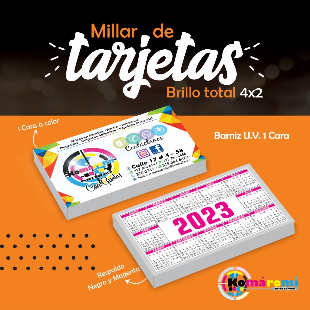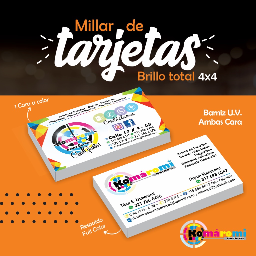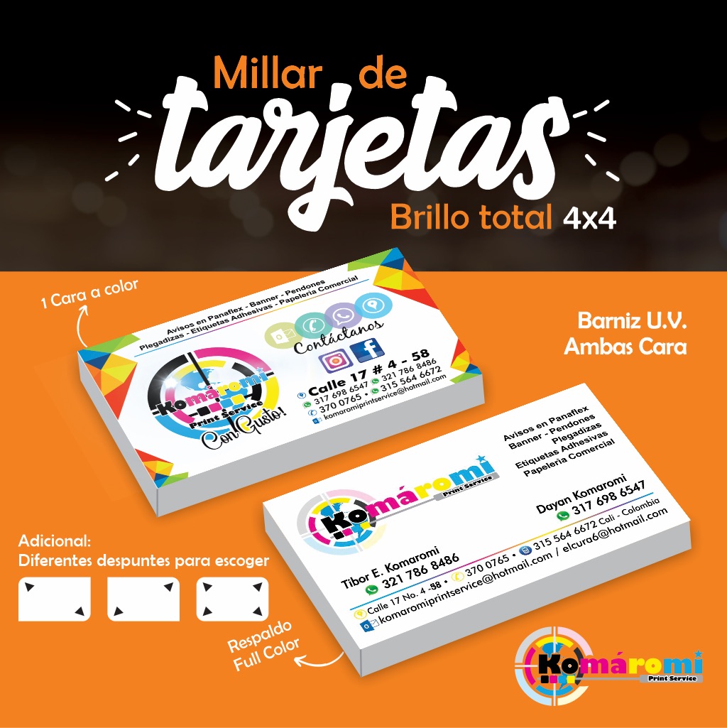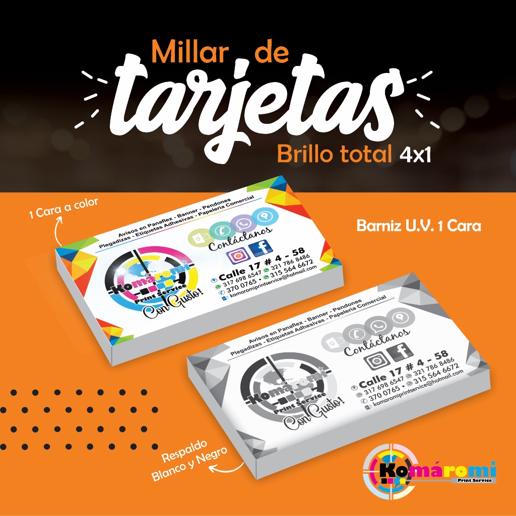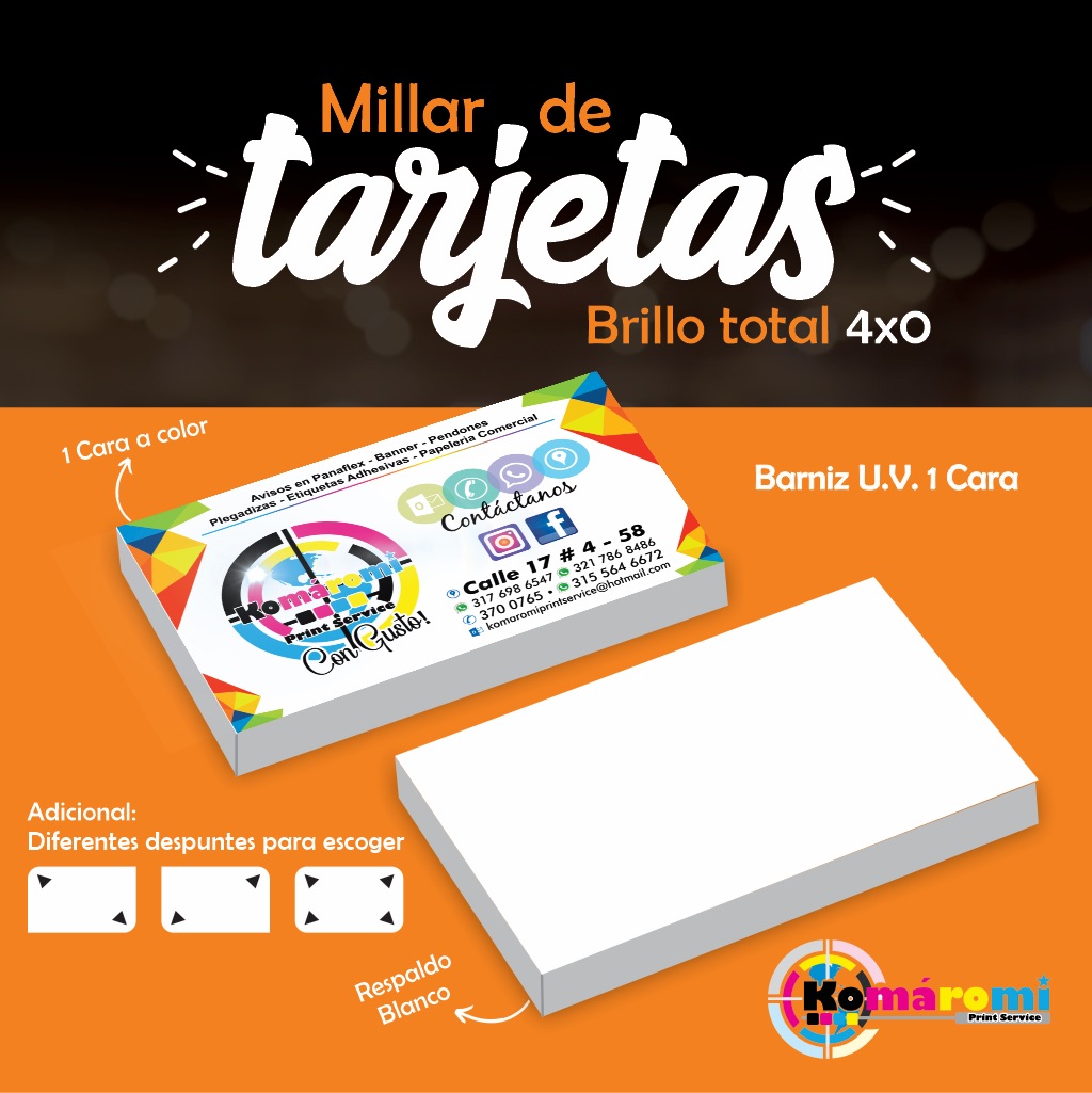 Tarjetas de presentación en diferentes papeles, tintas y acabados. Precio por millar.